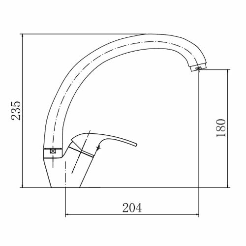 Смеситель для кухни FASHUN (A4115) хром, H=235 мм, латунь, картридж D=35 мм, излив H=180 мм, гибкая подводка: 450 мм в комплекте, крепёж: двойная шпилька