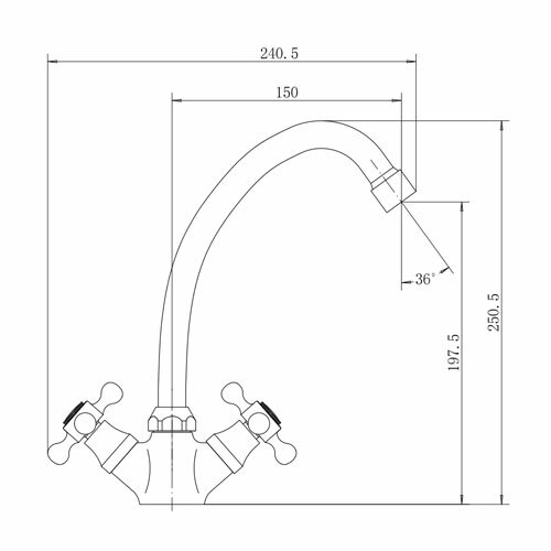 Смеситель для кухни FASHUN (A4119-2) хром, H=251 мм, цинковый сплав, кранбуксы с керамическими пластинами 180°, излив H=198 мм, гибкая подводка: 450 мм в комплекте, крепёж: гайка
