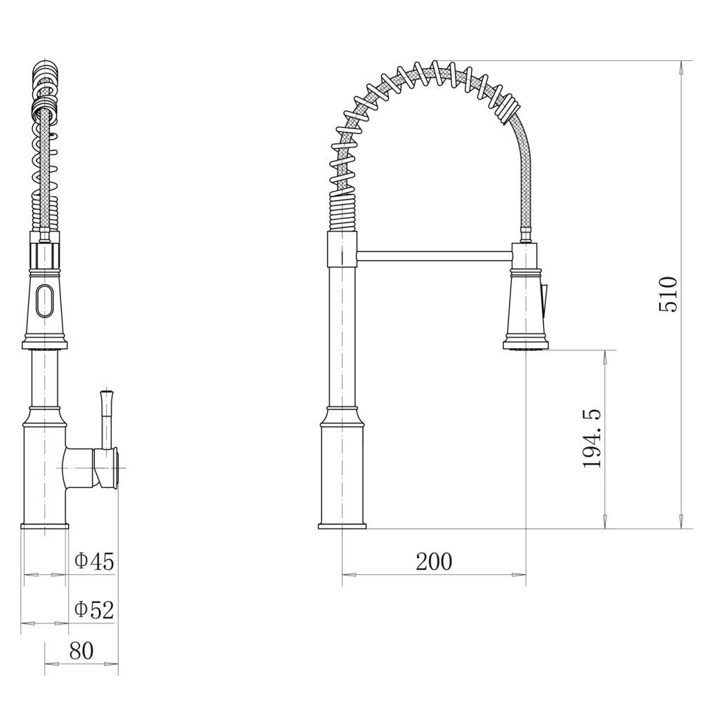 смеситель для кухни с вытяжной лейкой, H=510 мм