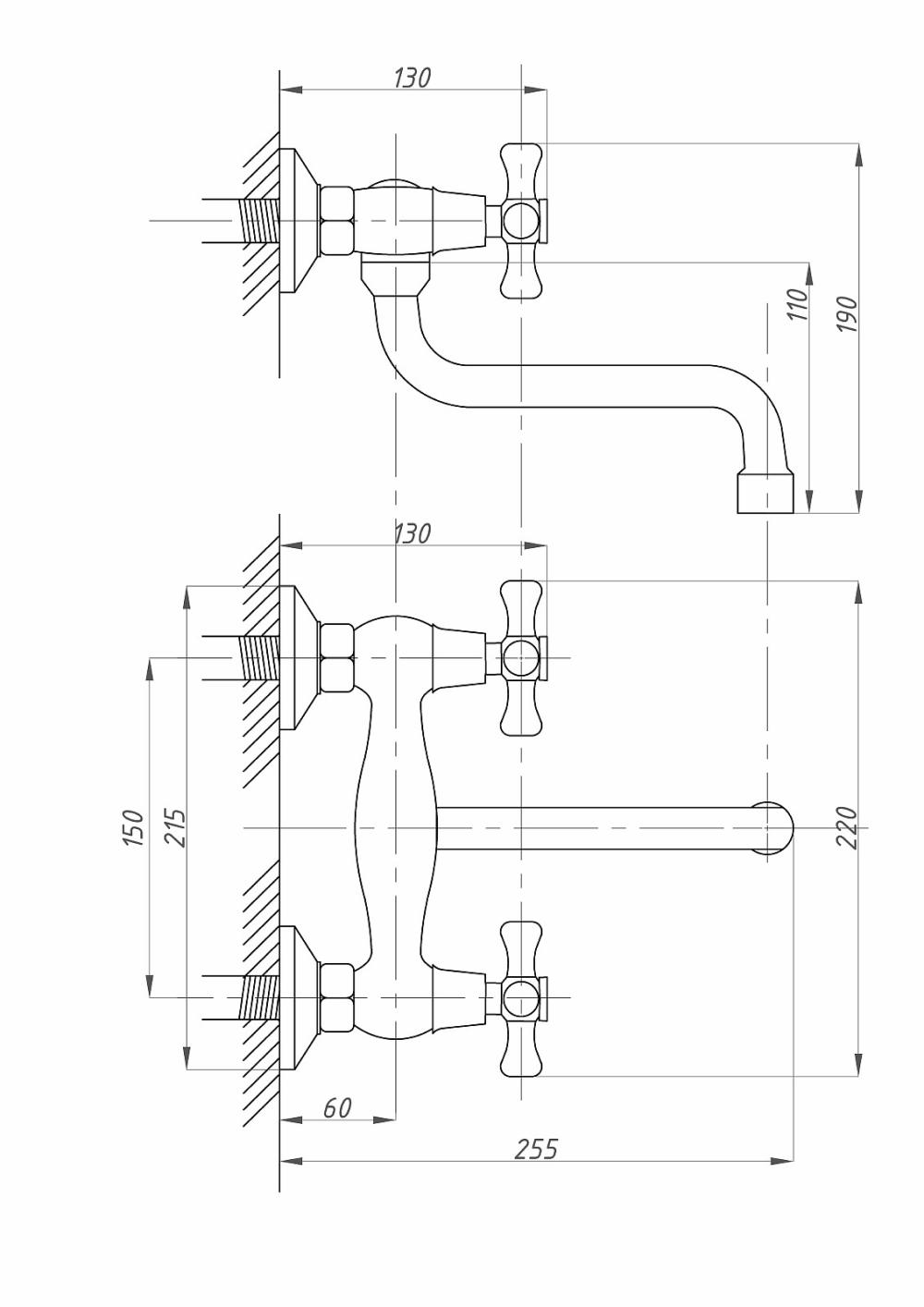 Смеситель настенный, излив, декоративная шайба (отражатель)-2шт., паспорт