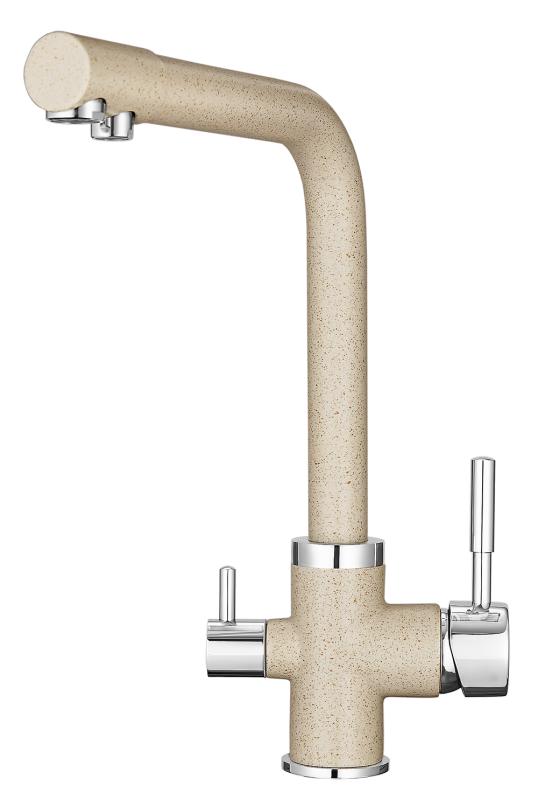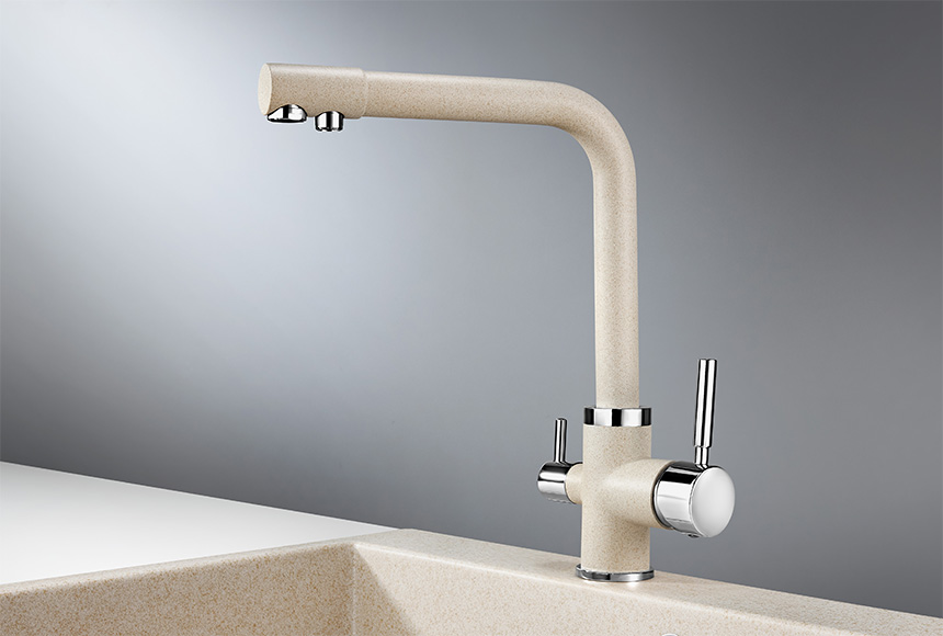 Смеситель для кухонной мойки Granula 2015 изготовлен из высококачественного материала. Латунный корпус обеспечивает длительный срок службы. При этом высокий излив позволяет мыть как мелкую, так и крупногабаритную посуду. Двухрычажная модель смесителя Granula 2015 выполнена с краном для питьевой воды. Фильтрованная вода подается по отдельной трубке и не смешивается с водопроводной водой. Покупателям предлагаются различные типы смесителей, окрашенные в тон моек Granula и StandART. Все модели смесителей для кухонных моек во всех цветах Вы можете посмотреть и приобрести на нашем сайте или в наших представительствах в регионах.Если у Вас остались вопросы, обращайтесь к нашим консультантам