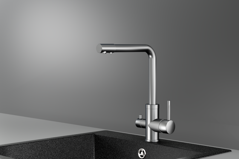 Преобразите свою кухню с помощью этого элегантного смесителя из нержавеющей стали! Он не только станет стильным акцентом в интерьере, но и обеспечит Вас чистой питьевой водой благодаря встроенному подключению к фильтру. Прочная нержавеющая сталь гарантирует долговечность и простоту в уходе, а удобное управление позволит легко настроить температуру и напор.