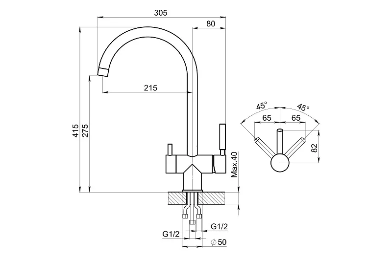 Гибкая подводка (600 мм), комплект креплений, переходник для подключения фильтра с питьевой водой