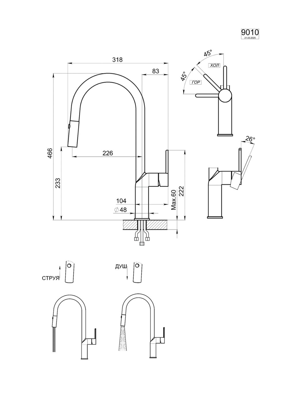 Оцените удобство выдвижного излива и возможность выбора между двумя режимами подачи воды: струей и мягким душем. Специальная конструкция с ограниченным ходом ручки позволяет устанавливать смеситель даже вблизи стены.<br>
