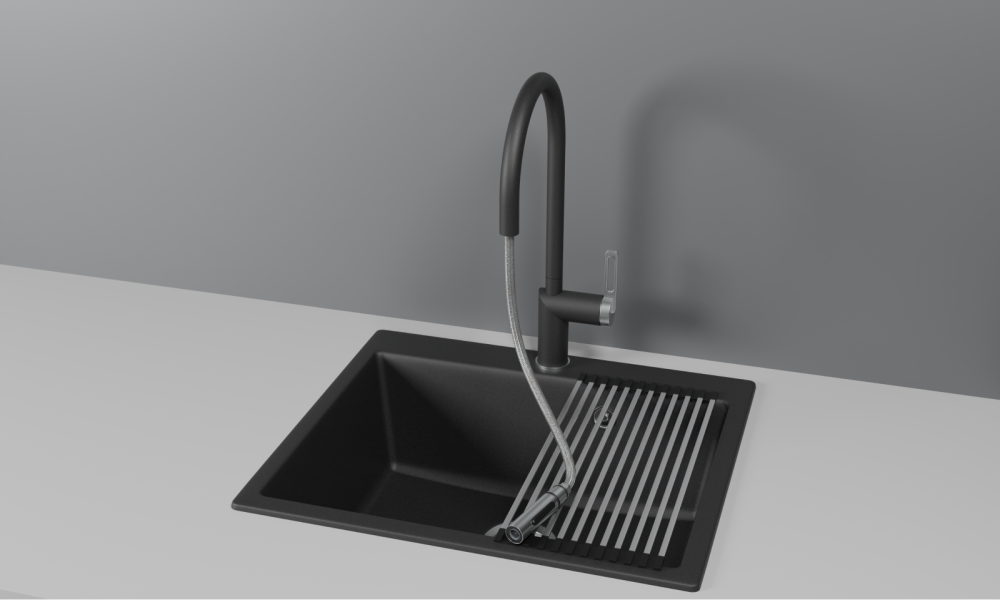 Смеситель для кухни GRANULA с выдвижным изливом (8172, ШВАРЦ)