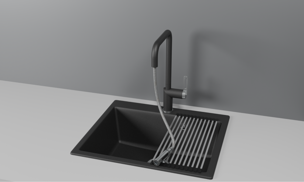 Смеситель для кухни GRANULA с выдвижным изливом (8173, ШВАРЦ)