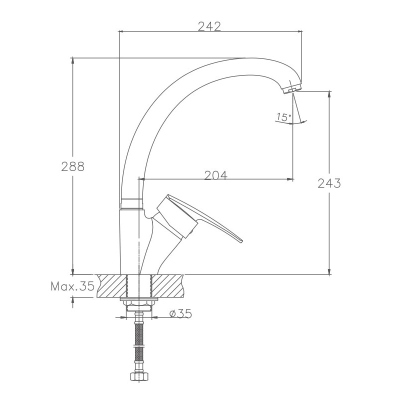Смеситель для кухни бренда Haiba. Изготовлен из латуни. Картридж 40 мм. Укомплектован аэратором. Гибкая подводка 40 см. С поворотным изливом.