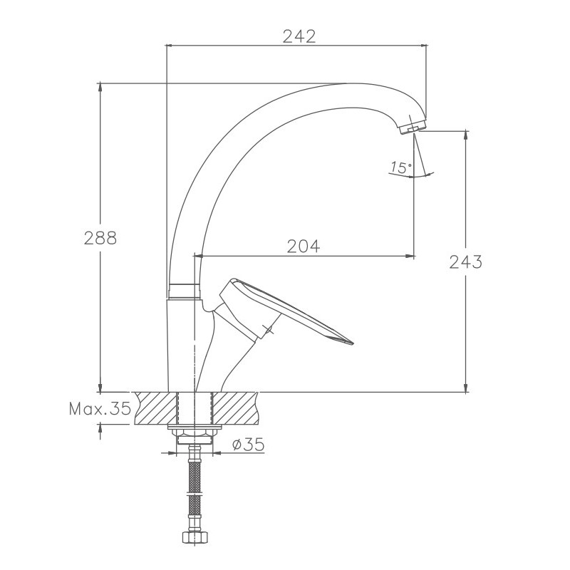 Смеситель для кухни бренда Haiba. Изготовлен из латуни. Картридж 40 мм. Укомплектован аэратором. Гибкая подводка 40 см. С поворотным изливом.