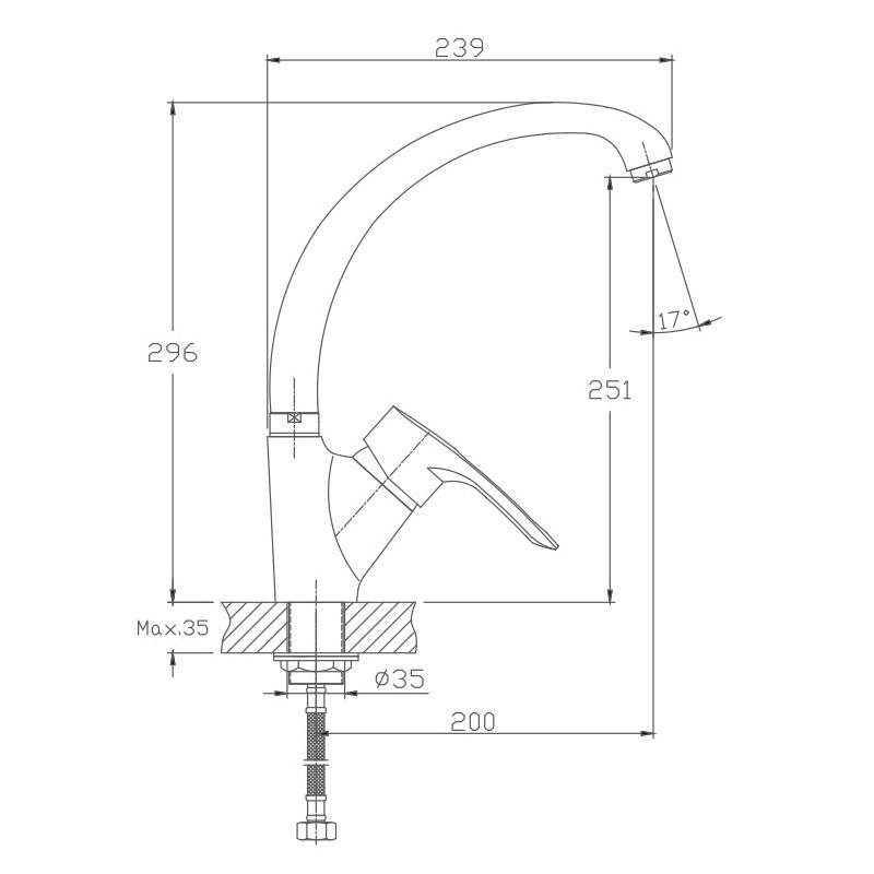 Смеситель для кухни бренда Haiba. Изготовлен из латуни. Картридж 35 мм. Укомплектован аэратором. Гибкая подводка 40 см. С поворотным изливом.