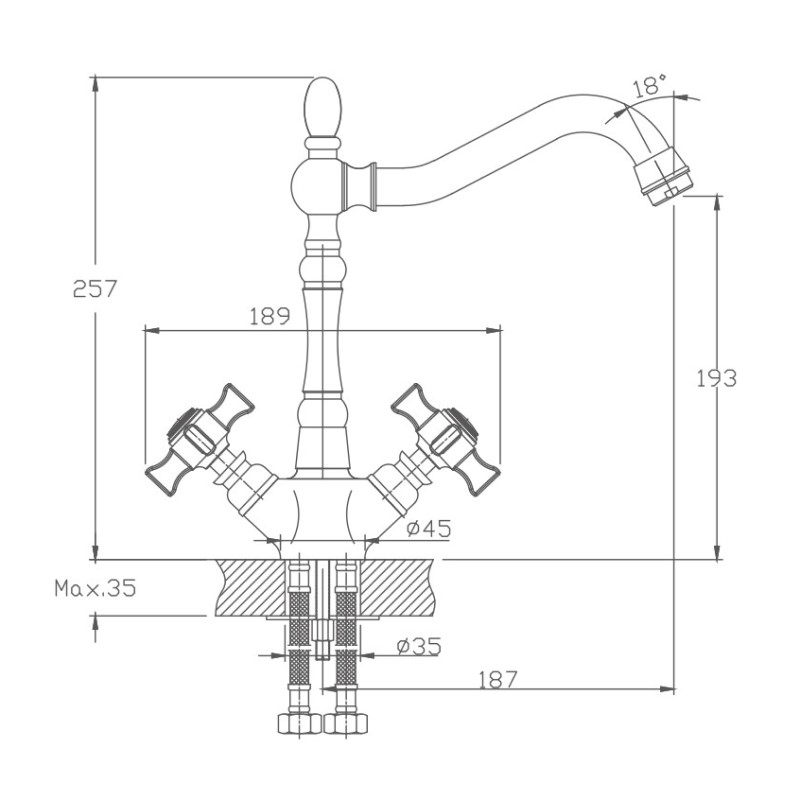 Смеситель для кухни бренда Haiba. Изготовлен из латуни. Укомплектован аэратором. Гибкая подводка 40 см. С поворотным изливом.