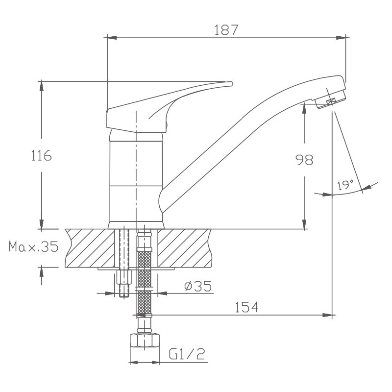 Смеситель для кухни бренда Haiba. Изготовлен из латуни. Картридж 35 мм. Укомплектован аэратором. Гибкая подводка 40 см. С поворотным изливом.