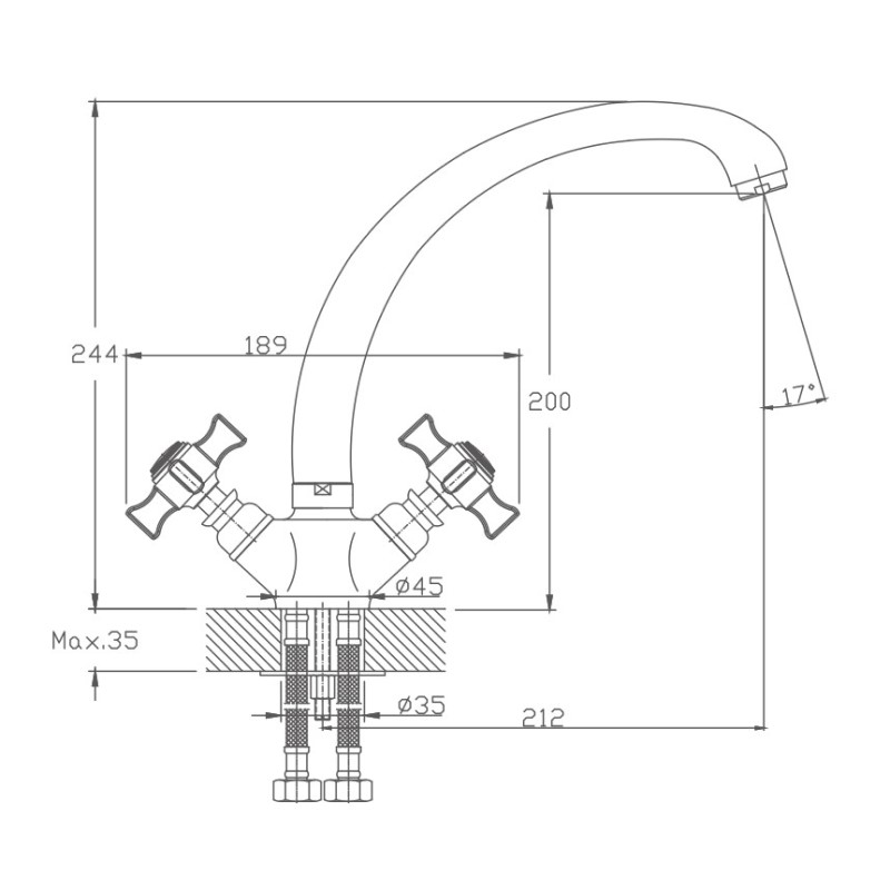 Смеситель для кухни бренда Haiba. Изготовлен из латуни. Укомплектован аэратором. Гибкая подводка 40 см. С поворотным изливом.