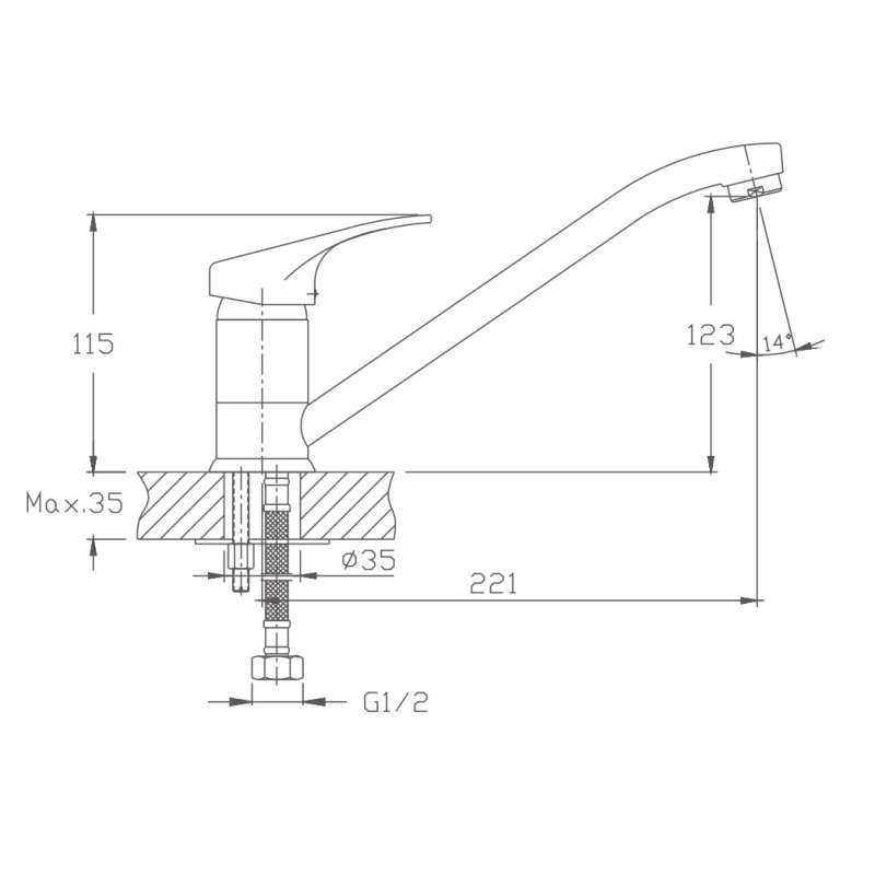 Смеситель для кухни бренда Haiba. Изготовлен из латуни. Картридж 35 мм. Укомплектован аэратором. Гибкая подводка 40 см. С поворотным изливом.