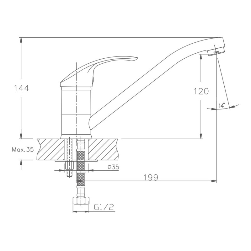 Смеситель для кухни бренда Haiba. Изготовлен из латуни. Картридж 35 мм. Укомплектован аэратором. Гибкая подводка 40 см. С поворотным изливом.