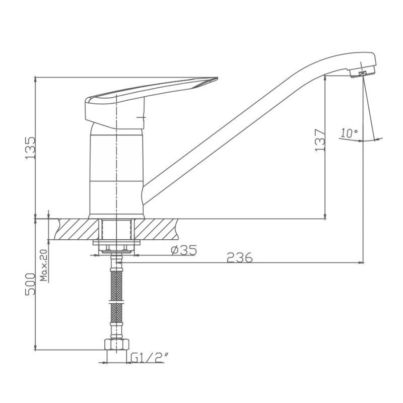 Смеситель для кухни бренда Haiba. Изготовлен из латуни. Картридж 40 мм. Укомплектован аэратором. Гибкая подводка 40 см. С поворотным изливом.