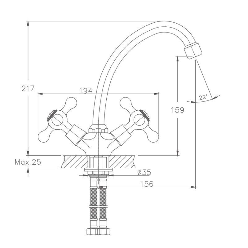 Смеситель для кухни бренда Haiba. Изготовлен из латуни. Укомплектован аэратором. Гибкая подводка 40 см. С поворотным изливом.