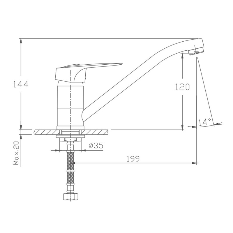 Смеситель для кухни бренда Haiba. Изготовлен из латуни. Картридж 35 мм. Укомплектован аэратором. Гибкая подводка 40 см. С поворотным изливом.
