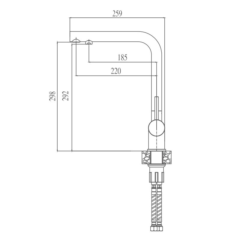 Смеситель для кухни бренда Haiba. Изготовлен из нержавеющей стали. Картридж 35 мм. Укомплектован аэратором. Гибкая подводка 40 см. С поворотным изливом.
