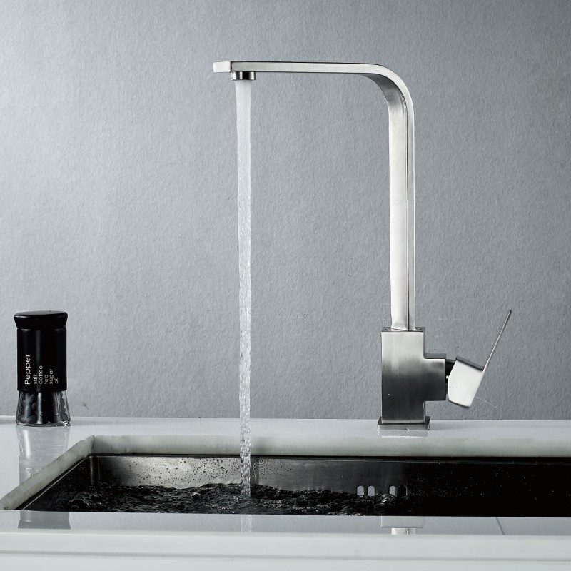 Смеситель для кухни бренда Haiba. Изготовлен из нержавеющей стали. Картридж 35 мм. Укомплектован аэратором. Гибкая подводка 40 см. С поворотным изливом.