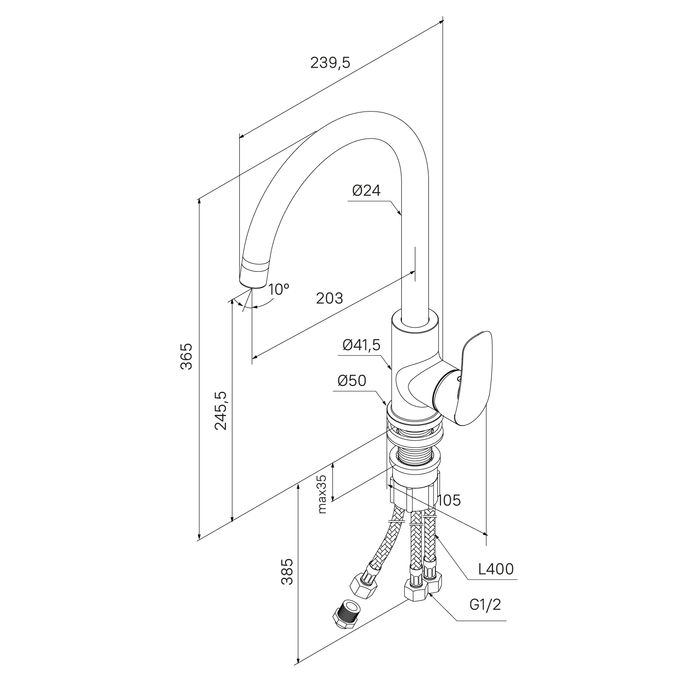 - Монатаж - на кухонную мойку, 1 отверстие