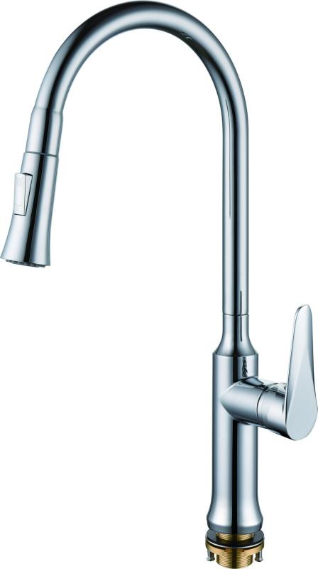 Смеситель для кухни RUSH арт. DN0335-23 с поворотным изливом и вытяжной лейкой из коллекции Denis с металлической ручкой, изготовлен из высококачественной латуни и имеет рычажное управление.