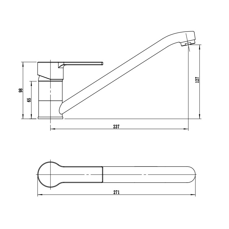 В смеситель установлен картридж D-35 с керамическими пластинами. Высота смесителя 98мм. Излив поворотный 237мм. Высота излива до аэратора 127мм. Аэратор изготовлен из пластика с нержавеющим корпусом, угол наклона аэратора- 15 гр.