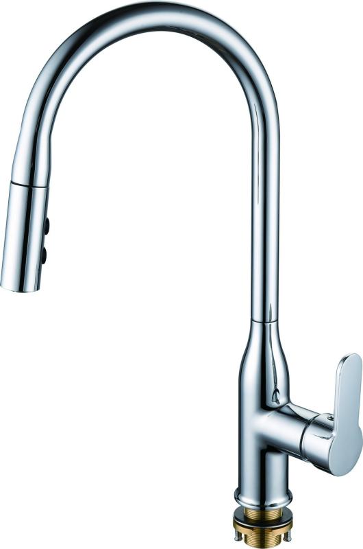 Смеситель для кухни RUSH арт. TE2835-24 с поворотным изливом и вытяжной лейкой с металлической ручкой из коллекции Tenerife изготовлен из высококачественной латуни и имеет рычажное управление, угол наклона- 8гр.