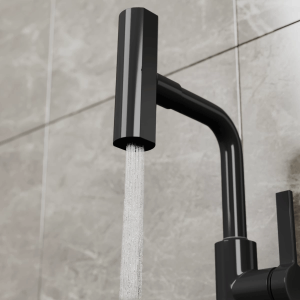 Смеситель для кухни с высоким поворотным изливом RUSH Tinos арт. TI3732-17Black цвет матовый черный с металлической ручкой изготовлен из нержавеющей стали SUS304 и имеет рычажное управление.
