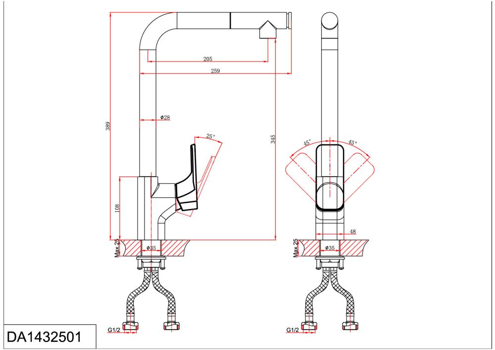 Смеситель для кухни с выдвижной лейкой D&K Berlin.Freie DA1432501