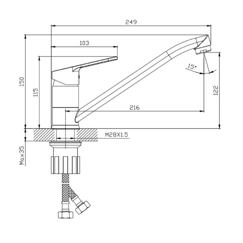 - Комплектация: смеситель, подводка, комплект креплений, инструкция.,