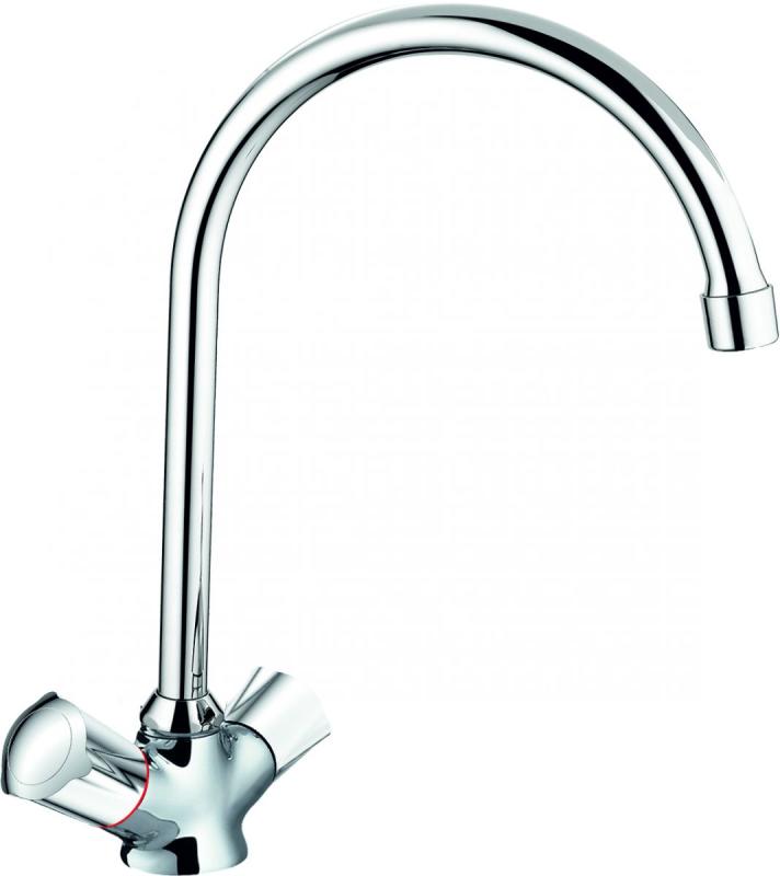 Смеситель для кухни с высоким, поворотным изливом RUSH арт. PI7950-23 с металлической ручкой из коллекции Pioneer изготовлен из высококачественной латуни и имеет вентильное управление.