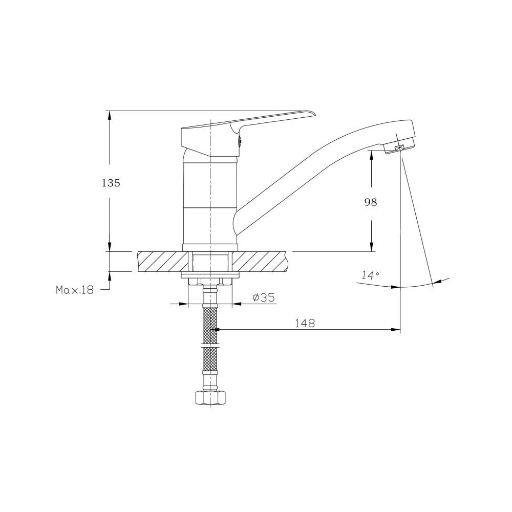 В смеситель установлен картридж D-35 (RSH102) с керамическими пластинами. Высота смесителя 109 мм. Излив поворотный, 148 мм. Высота излива до аэратора 78 мм. Аэратор изготовлен из пластика с нержавеющим корпусом, угол наклона - 14 гр.