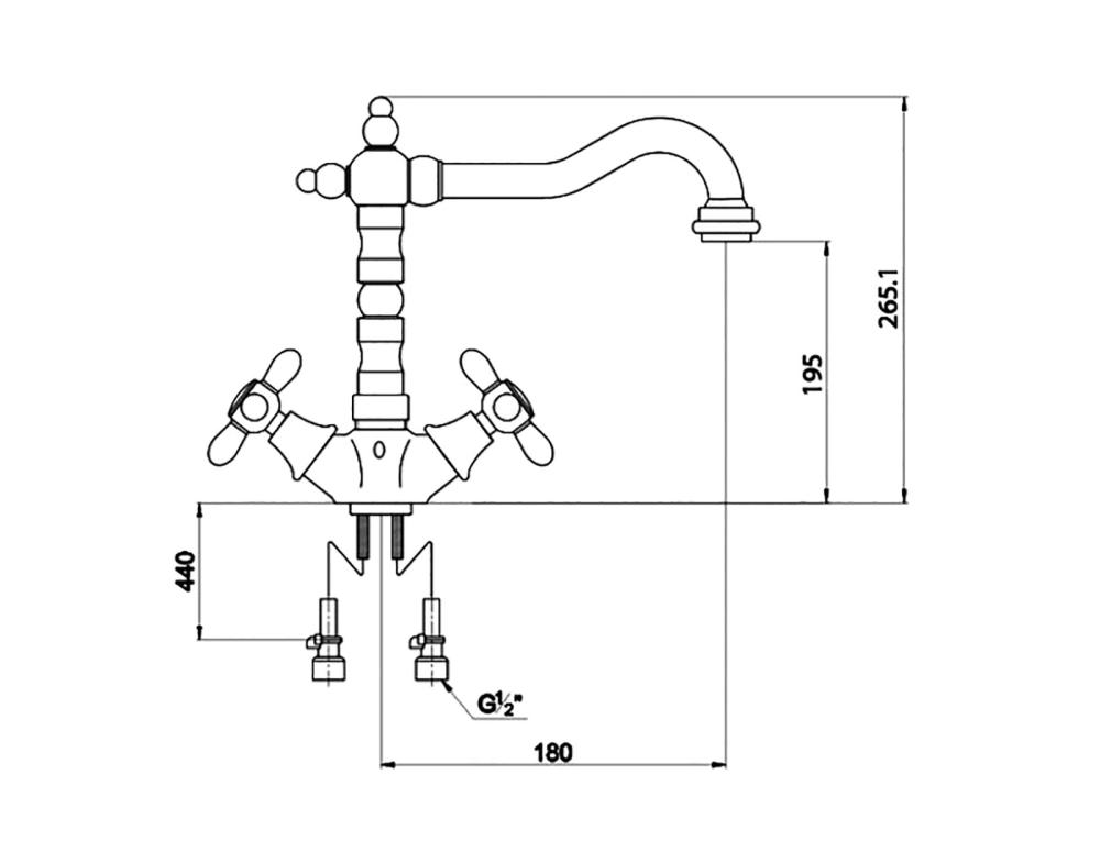 Смеситель для кухонной мойки Timo Ritz (0143FK chrome+gold) В комплект входит: Смеситель-1шт. Гибкая подводка-2шт. Набор креплений-1шт. Инструкция-1шт