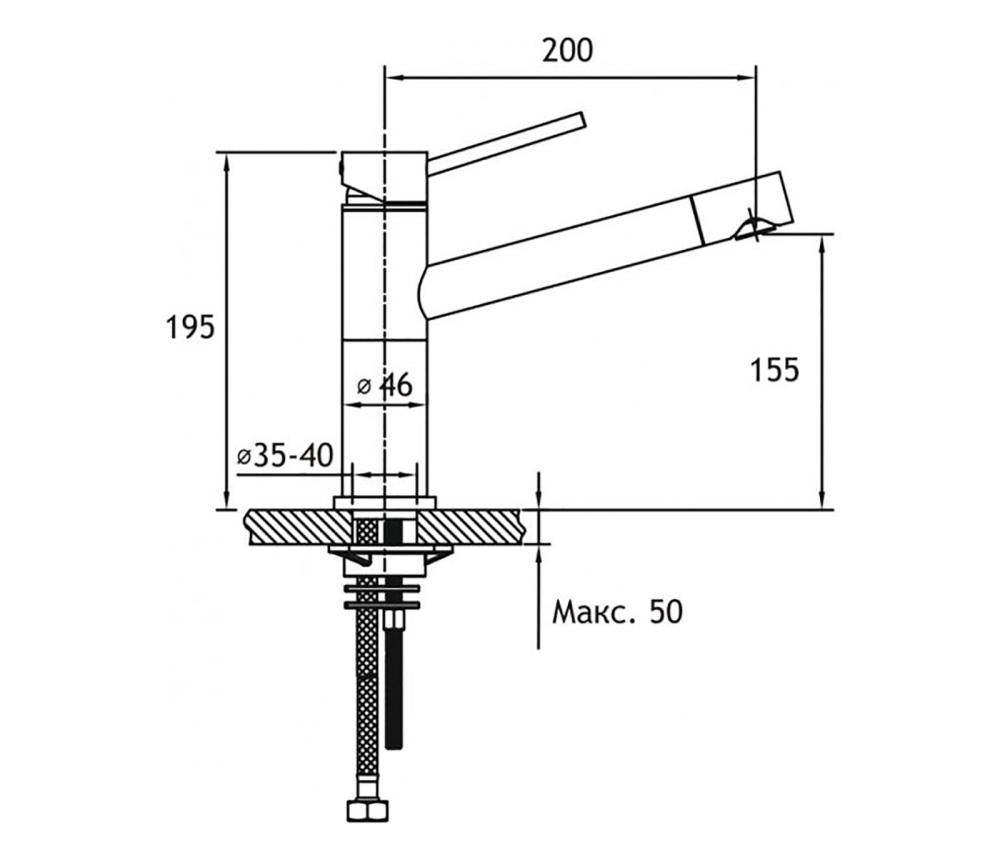 Смеситель для кухонной мойки Timo Saona (2303F anthracite) В комплект входит: Смеситель-1шт. Гибкая подводка-2шт. Набор креплений-1шт. Инструкция-1шт