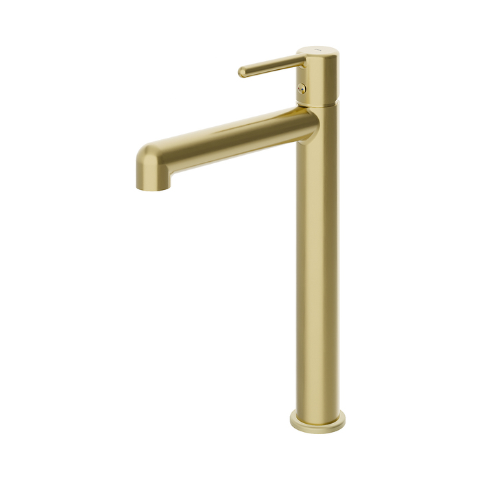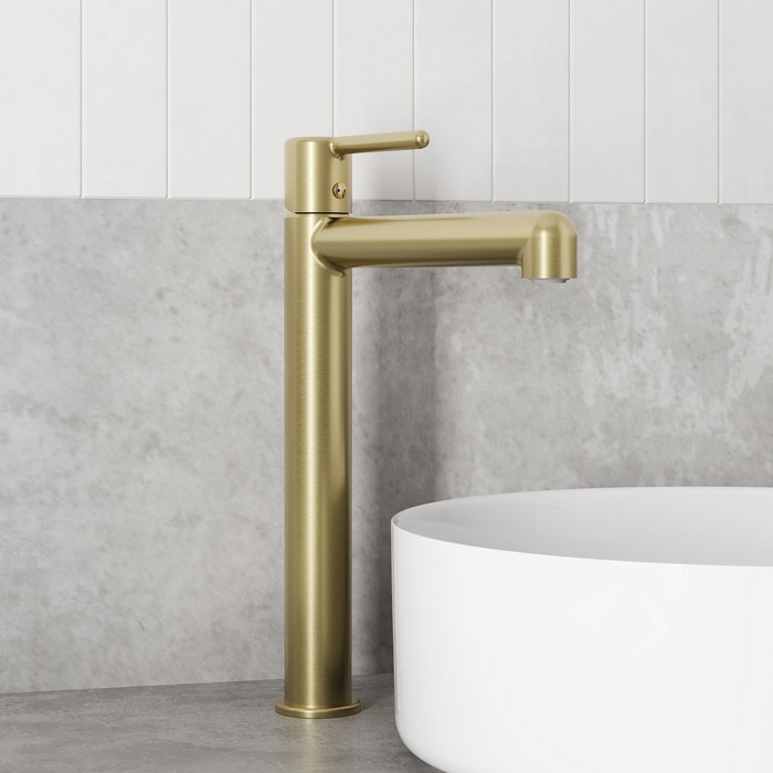 Стильный высокий смеситель для настольного умывальника удачно сочетает актуальный современный дизайн и новый трендовый оттенок матового золота. Тонкая удлиненная ручка добавляет смесителю изящества и комфорт в управлении. Расстояние между ручкой и изливом увеличено для большего удобства.