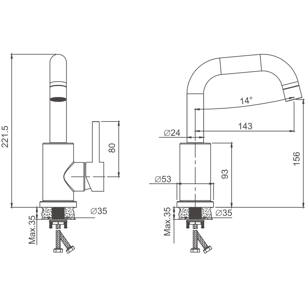 Смеситель для раковины BELZ оружейная сталь (B10810-3)