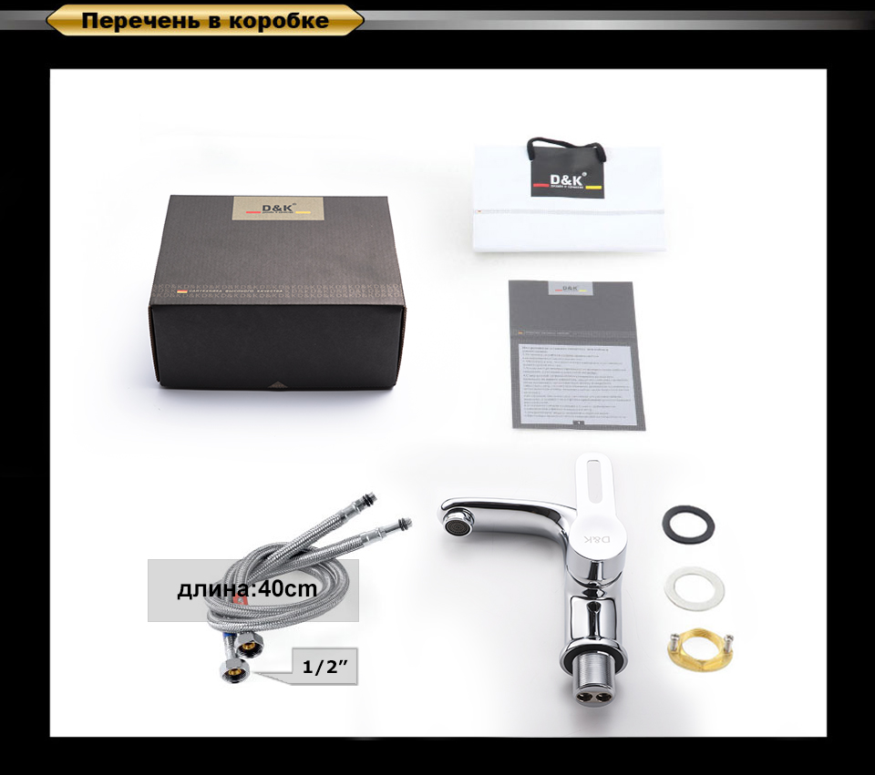 - Гибкая подводка 40 см идёт в комплекте для быстрой установки.