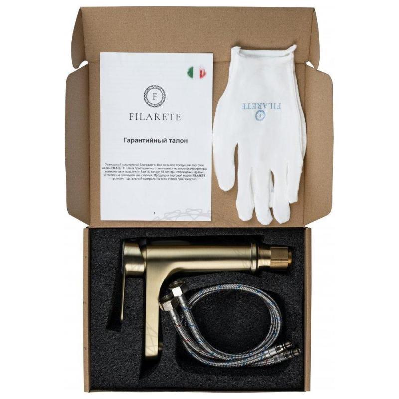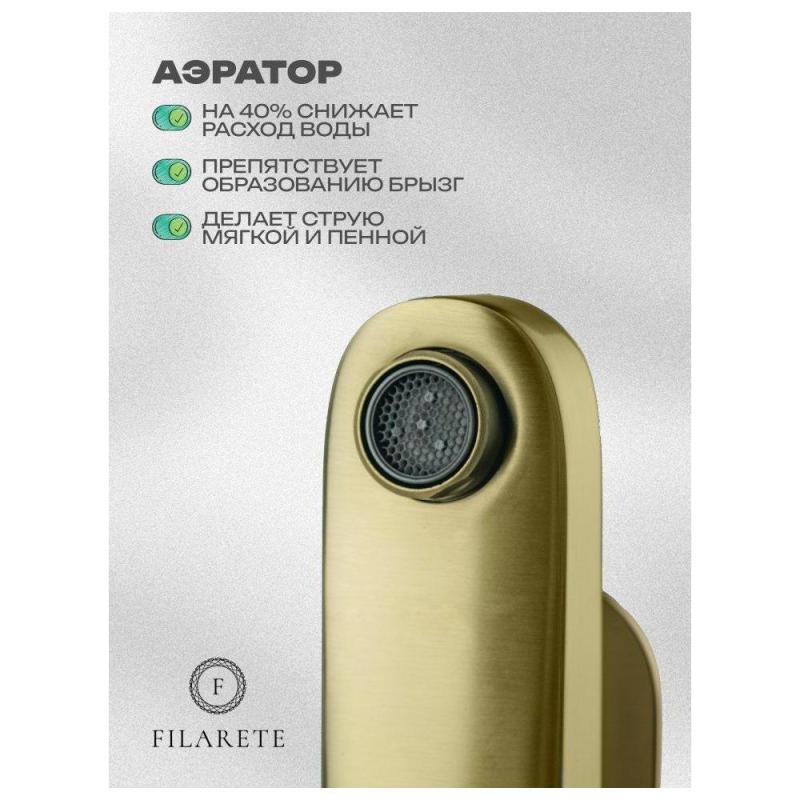Смеситель для раковины FILARETE Retta FL5030MG, матовое золото. Гарантийный срок: 7 лет. Управление: рычажное. Стилистика дизайна: современный стиль. Материал: латунь. Монтаж: на раковину.