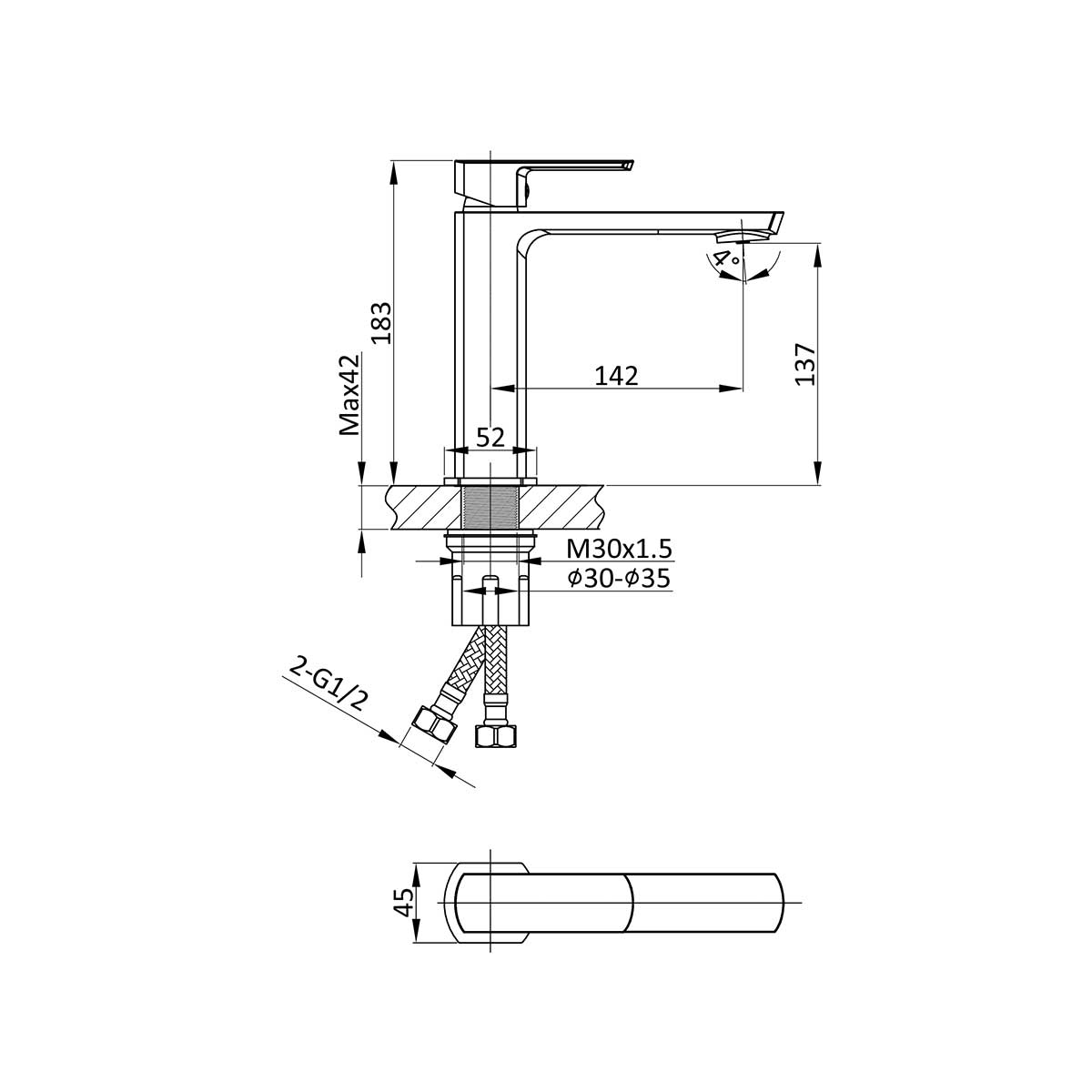 - В комплекте: 35мм картдриж, 2 шланга подачи воды в комплекте