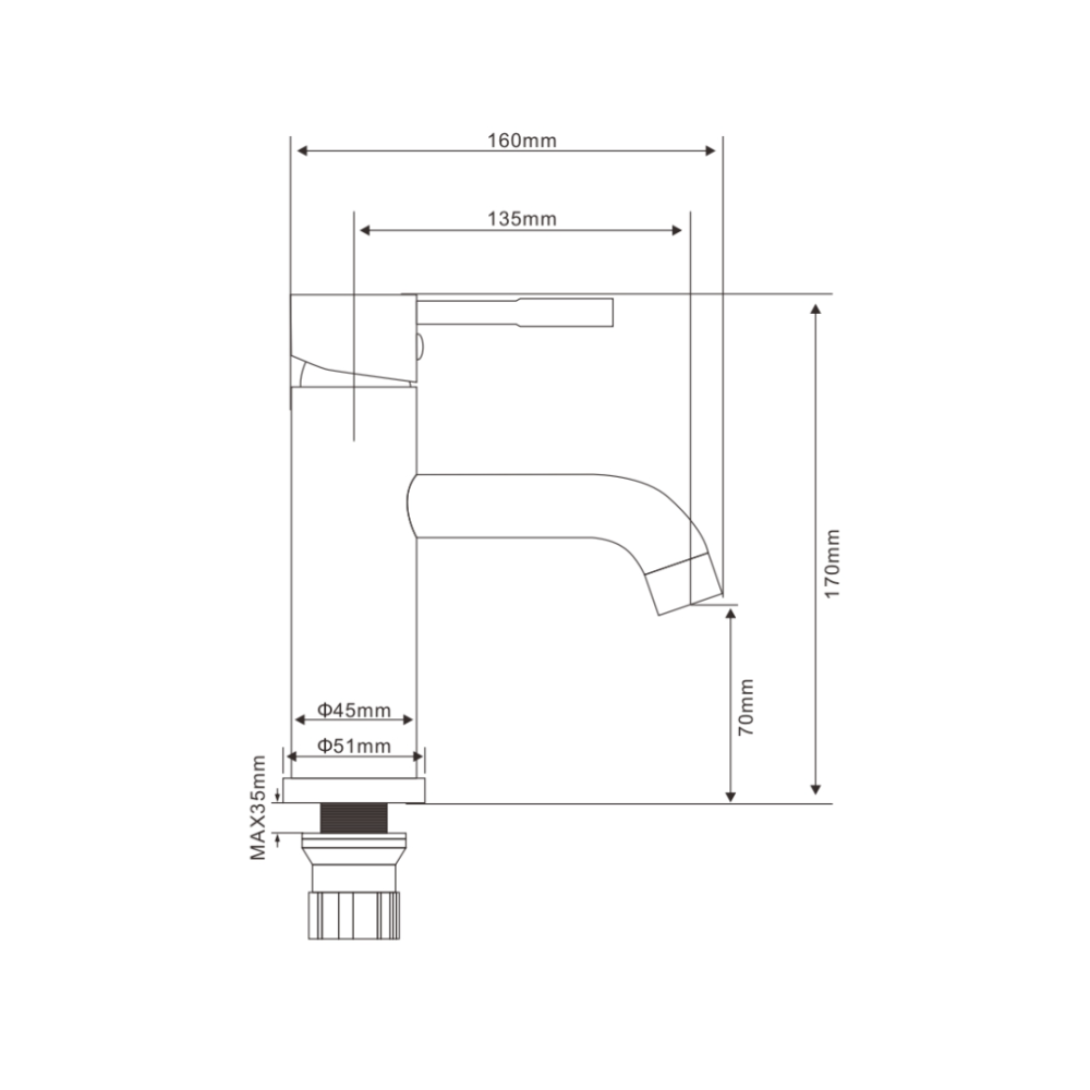 Смеситель для раковины OLIVE’S Economy AKERO кругл. нержавеющая сталь (AK11100)