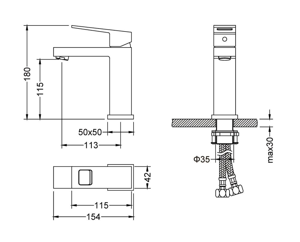 Смеситель для раковины Timo Briana (7161/00F) В комплект входит: Смеситель-1шт. Гибкая подводка-2шт. Набор креплений-1шт. Инструкция-1шт