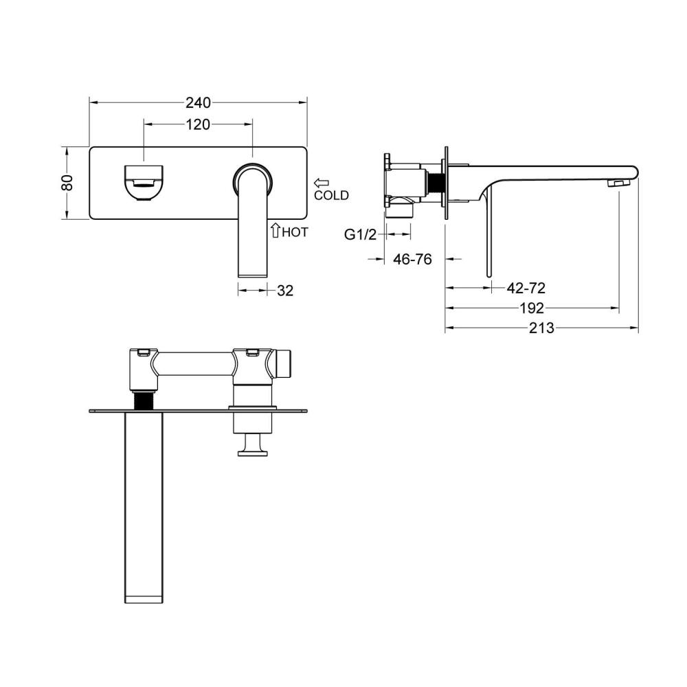 Смеситель скрытого монтажа - 1 шт. Декоративная накладка смесителя (латунная) - 1 шт. Излив - 1 шт. Ручка смесителя - 1 шт. Инструкция - 1 шт.