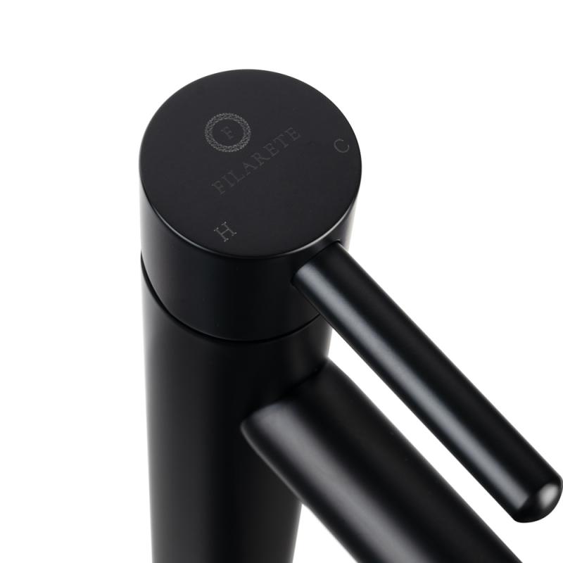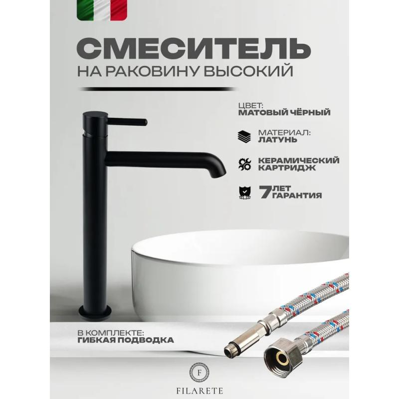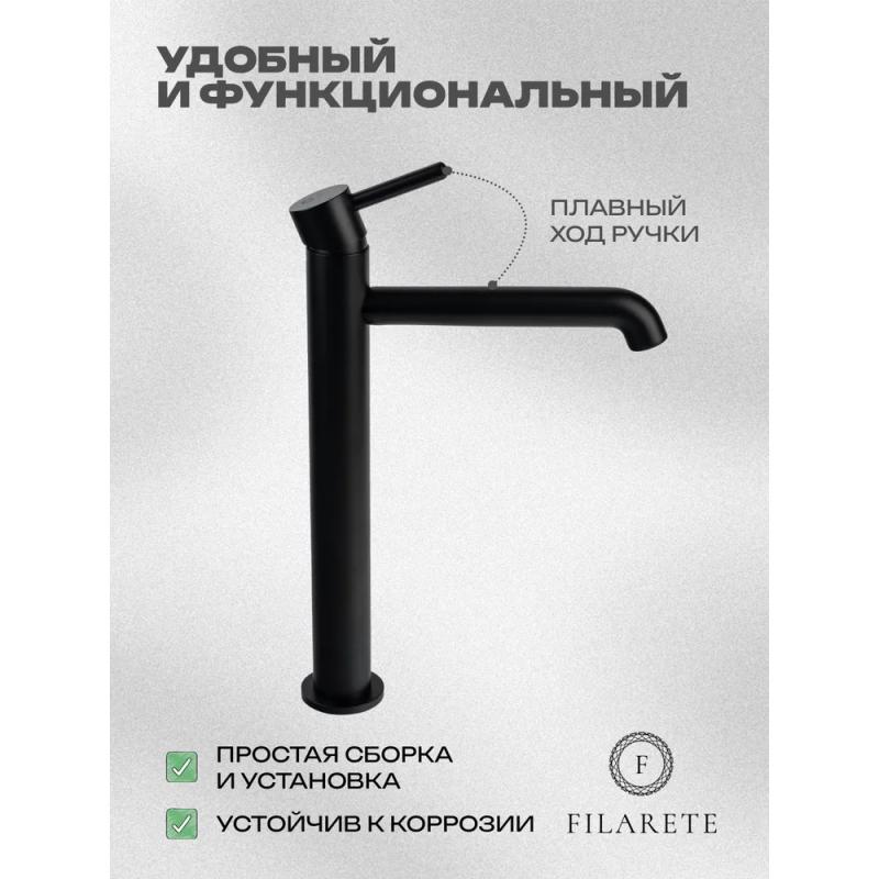Смеситель для раковины высокий FILARETE Roun FL6020BL, черный. Гарантийный срок: 7 лет. Управление: рычажное. Стилистика дизайна: современный стиль. Материал: латунь. Монтаж: на столешницу.