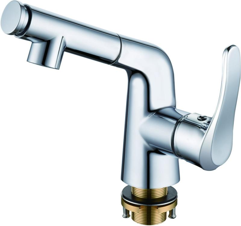 Смеситель для раковины RUSH арт. JA0735-12 с вытяжной лейкой из коллекции Jawa с металлической ручкой, изготовлен из высококачественной латуни и имеет рычажное управление.