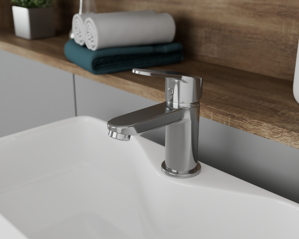 Смеситель для раковины RUSH арт. SK5720-11 с металлической ручкой из коллекции Sky изготовлен из высококачественной латуни и имеет рычажное управление.