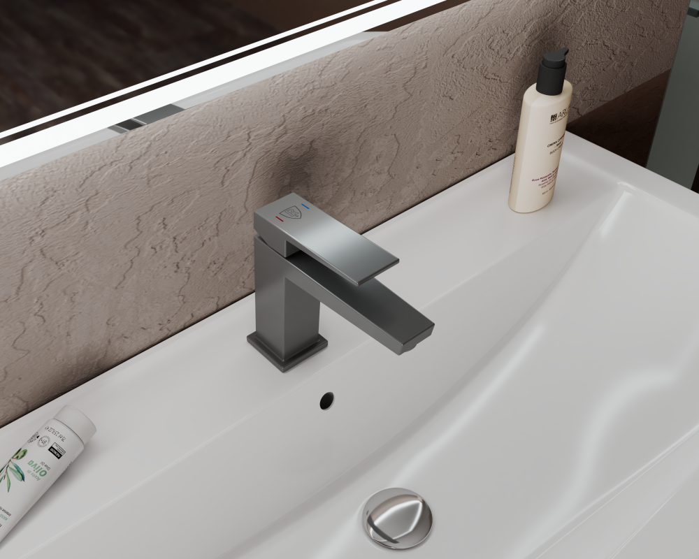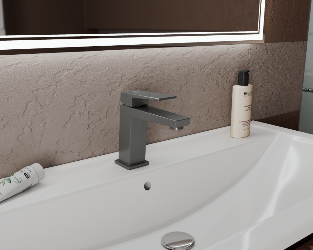 Смеситель для раковины RUSH арт. TR3635-12Grey с металлической ручкой из коллекции Thira изготовлен из высококачественной латуни и имеет рычажное управление.