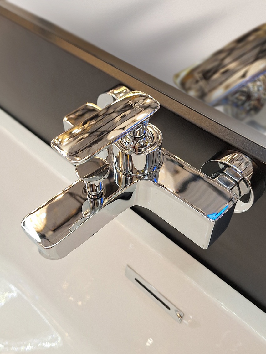 - Комплектация: смеситель настенного монтажа, аэратор, эксцентрики, чаши декоративные
