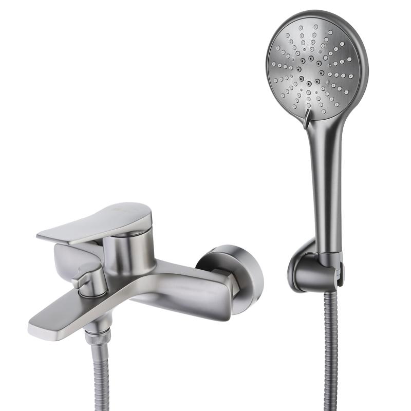 Аксессуары в комплекте: душевой шланг 1,5 м, настенное поворотное крепление, 3-функциональная лейка Ø110x243 мм