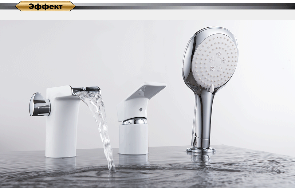 Смеситель, излив с переключателем-дивертором, блок смешивания, соединительный шланг, шланг душевой, лейка, паспорт, брендовая сумка