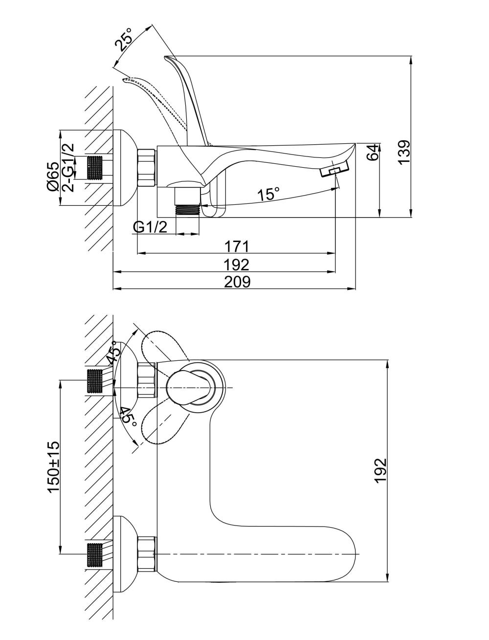 Смеситель, эксцентрики-2шт, декоративная шайба (отражатель)-2шт, шланг душевой, лейка душевая-3 режима, держатель душевой лейки, паспорт, брендовая сумка